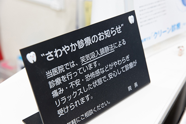 当院では表面麻酔や笑気吸入鎮静法を使用し、緊張を和らげ、やすらいだ状態で治療を受けることができます。