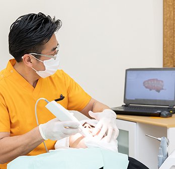 具体的には初診時や2回目あたりの口腔内状況の把握と患者様への提示を細かく説明して、状況が悪ければ、口腔内スキャナーを撮って噛み合わせや歯茎の腫れなどを診ます。